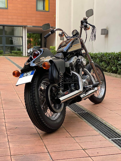 Una storia che merita di essere narrata quella di BEBBI FRISELLA e del suo 883 Hugger del 1996. Un racconto che parte dalla Sicilia e ha il suo epilogo in Svizzera, dove vive il protagonista di questo post. Per i suoi cinquant’anni Bebbi riceve in regalo dal padre questo sporty: il mezzo è da sempre nel garage di casa Frisella a Palermo. Il proprietario, Bebbi’s father ormai ottantenne lo usa sempre meno di frequente e conoscendo le inclinazioni motociclistiche del figlio decide di fargli questo graditissimo presente. La moto giunge in una veste semi stock a San Nazzaro del Ticino e Bebbi, già possessore di altre Harley Davidson in passato, ha ben chiaro cosa farne. Realizzare la modified radicale che da sempre sognava.